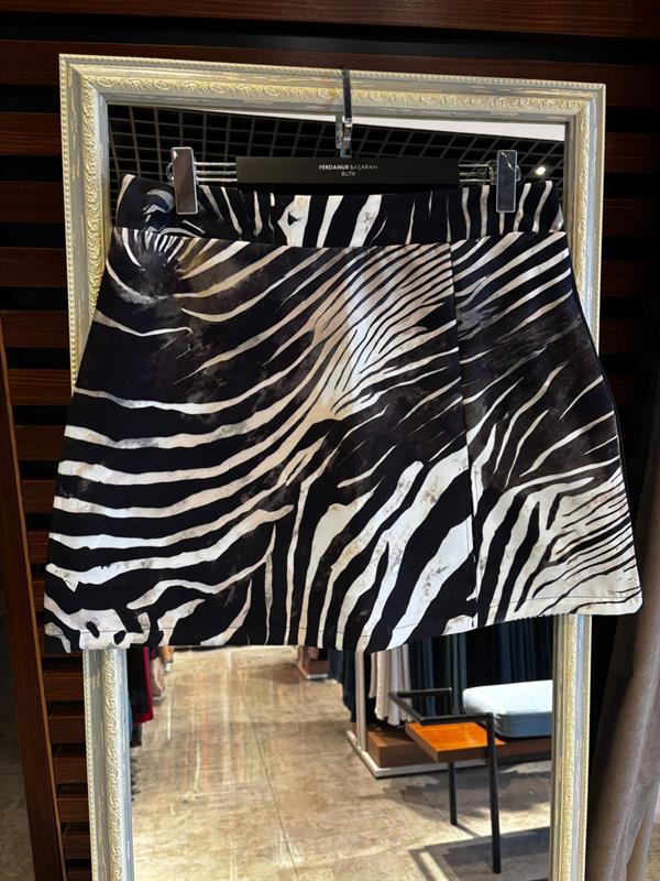 Büyük Beden Rahat Kalıp Krep Kumaş Şort Etek - Zebra Desen (FBB340664)
